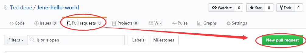 点击 Pull Request 标签,然后点击 New pull request 按钮。