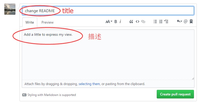 给你的 pull request 写个标题,然后对你的更改做一个简明的描述。