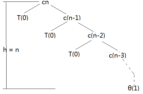 递归树简析:\(T(n)=T(n−1)+T(0)+cn\)