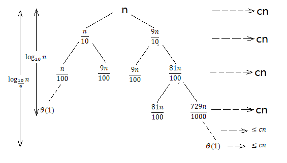 此时 \(T(n)=T(n/10)+T(9n/10)+θ(n)\)。